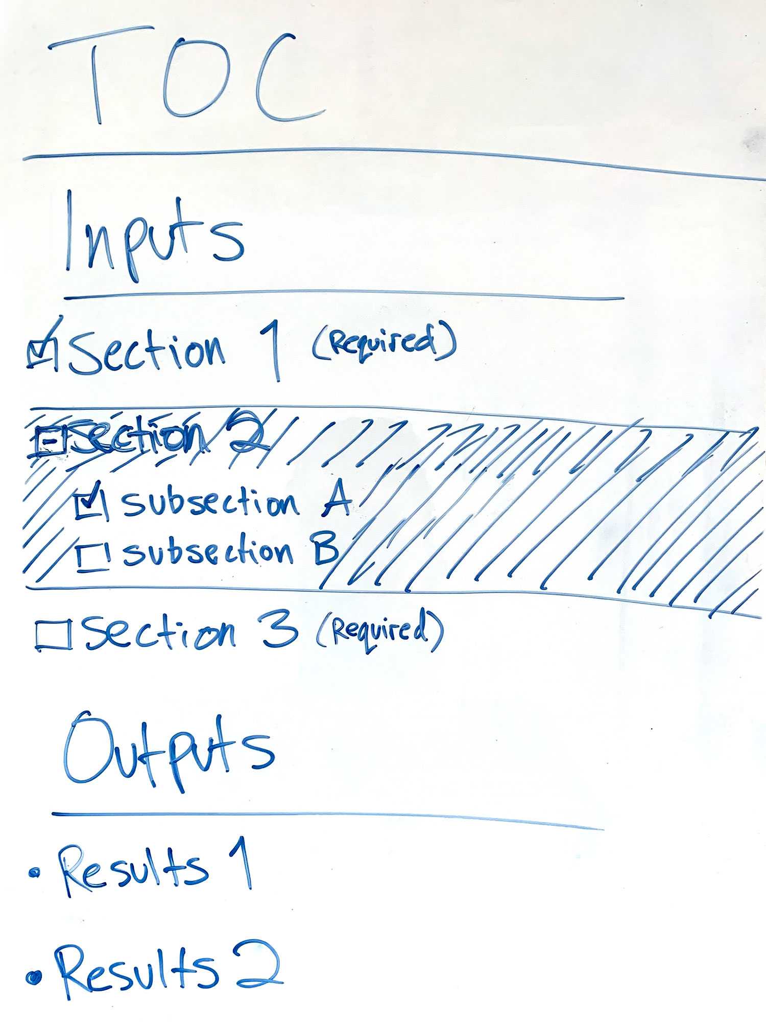 The design team’s initial solution was to provide a left-hand rail, table of contents. This TOC would provide the following functionality: